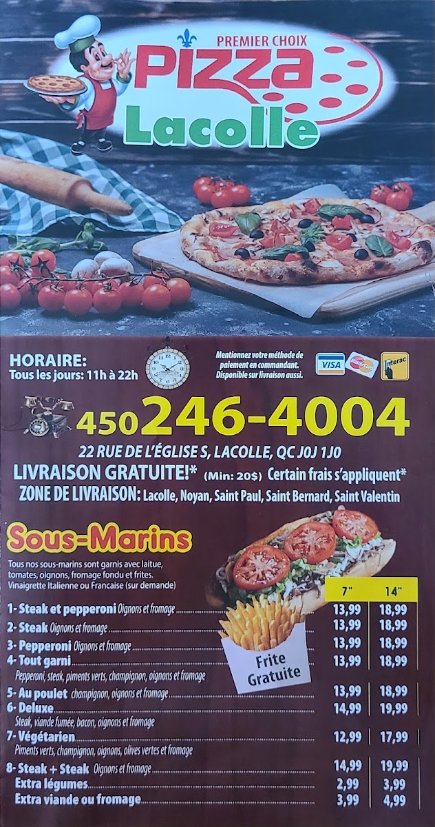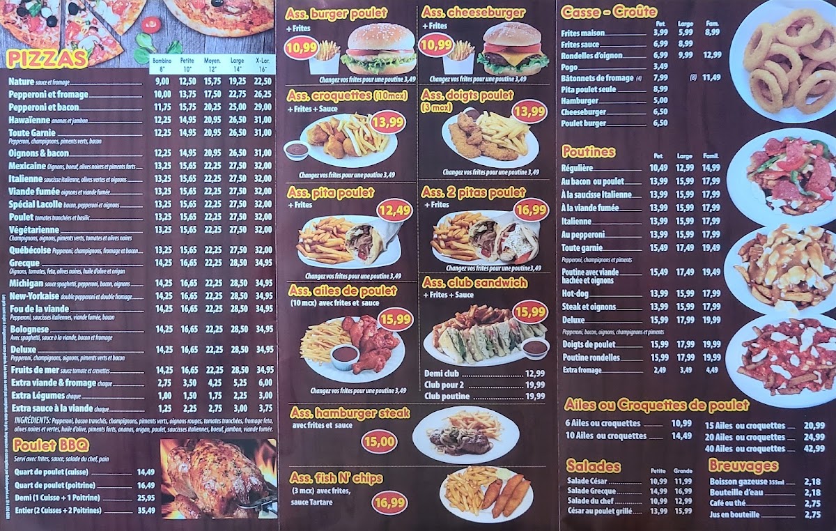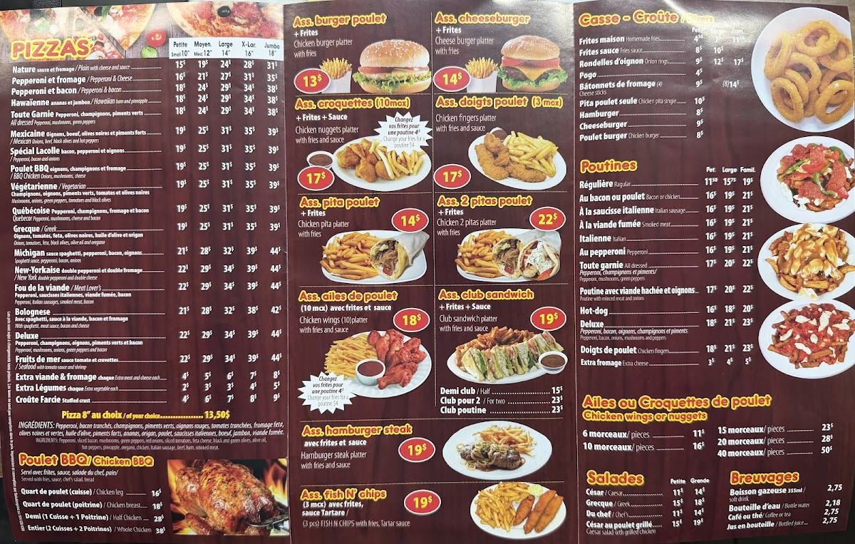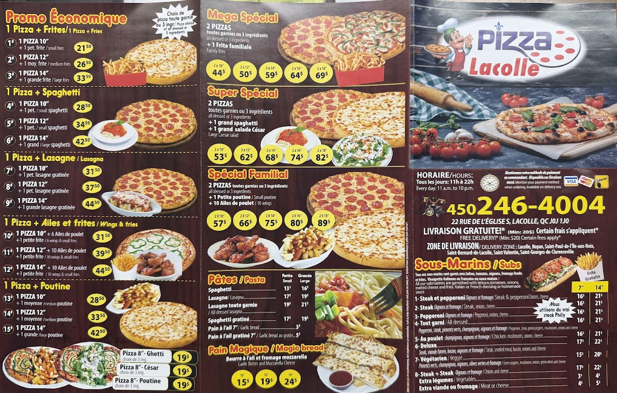 Pizza Lacolle, nestled in Le Haut-Richelieu, QC, serves up a diverse and delightful menu that goes beyond traditional pizza. Renowned for its standout pies like the classic Hawaiian and seafood pizza, this spot is a must-visit for pizza enthusiasts. Alongside expertly crafted pizzas, their menu includes flavorful subs and hearty poutines, offering a rich variety for all tastes.